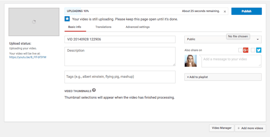 نقترب من الهدف! الآن حان الوقت لنشر الفيديو الخاص بك! قد تتطلب كتابة الوصف