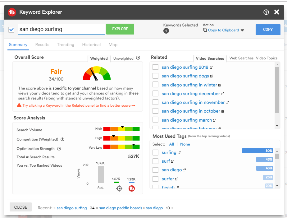 قم بالبحث على YouTube عن فكرتك ولاحظ الكلمات الرئيسية والعبارات التي تستخدمها مقاطع